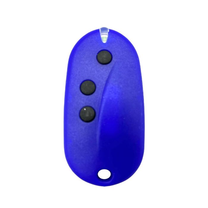 Deze handzender heeft geen DIP-switches (micro-schakelaars) en maakt gebruikt van een rollende code.